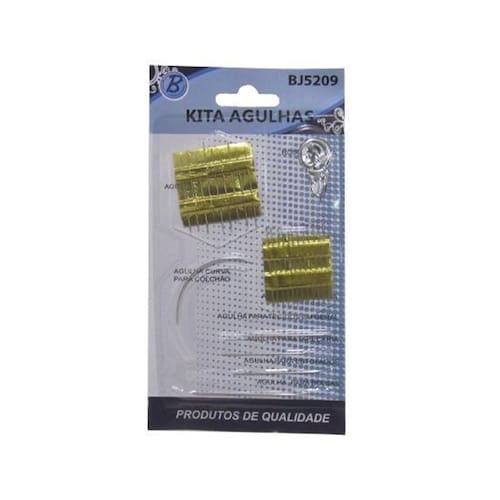 Informações adicionais: Ean: 7898918852094 Validade: indeterminada Tamanhos aproximados: 09 agulhas para bordado com 3.8 cm 12 agulhas para costura com 3.6 cm 03 agulhas para tecidos com 4.3 cm 01 agulha para bolsas com 6.5 cm 01 agulha para tapeçaria com 5.0 cm Peso aproximado na embalagem: 8g Tipo de produto: kit com 26 agulhas de costura + rosqueadeira 27 peças Cor: prata Composição: metal