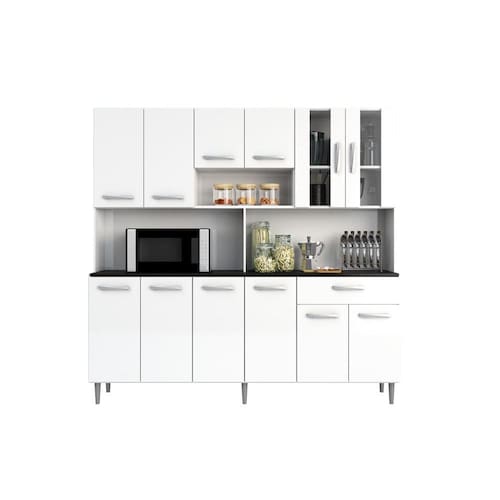 O Kit Cozinha 12 portas 1 gaveta Clara da Poliman Móveis é um produto amplo e versátil podendo ser utilizado como complemento de cozinha ou peça única, são 12 portas sendo duas com detalhe em vidro proporcionando charme a peça, 01 gaveta com corrediças metálicas, nicho organizador decorativo, espaço para dispor aparelhos e utensílios domésticos, puxadores em polímero e pés PVC 13cm fixos que garantem firmeza ao produto. Produto em MDP Perffect Touch de maior resistência e com proteção Bacterban que inibe a proliferação de fungos e bactérias na superfície do móvel e portas em MDP com pintura UV brilho. Produto ecologicamente correto com embalagens preparadas para evitar danos e permitir que o produto chegue em perfeito estado em sua casa. Perfeita combinação com os mais variados ambientes. Qualidade que só a Poliman oferece em seus produtos.