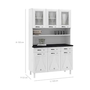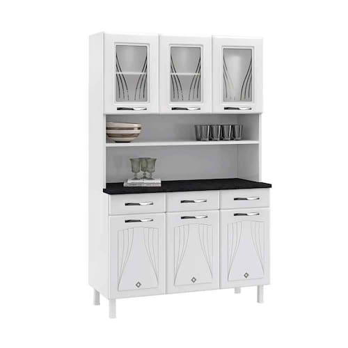 Caracteristicas Portas: 6 Gavetas: 3 Prateleiras: 2 Puxadores: Acrilico Nichos: Nao Material da estrutura: Aco Pes: Regulaveis Acabamento: Pintura eletrostatica Escala de brilho: Alto brilho