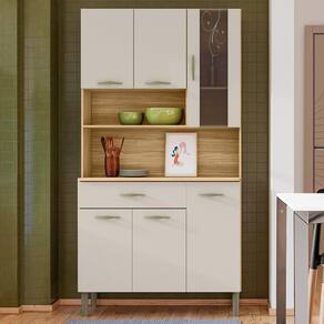 O Armário Kit Cozinha é perfeito para quem busca praticidade e estilo na organização do ambiente. Produzido em MDP de 12mm e 15mm, conta com 06 portas, sendo 01 porta superior com vidro temperado, e 01 gaveta, equipadas com dobradiças e corrediças 100% metálicas. O design conta com puxadores ergonômicos e pés fixos, ambos em plástico resistente (poliestireno e polipropileno), além de nichos decorativos. Com pintura UV, o acabamento do móvel oferece maior proteção, realce nas cores e facilidade na limpeza do dia a dia. Este móvel chegará em sua casa separado em 01 volume.