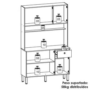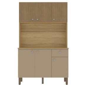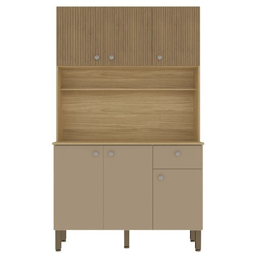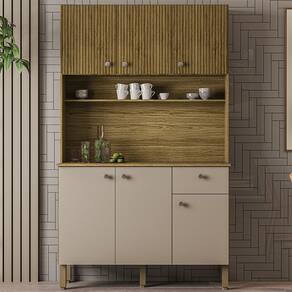 O Armário Kit Cozinha é perfeito para quem busca estilo e funcionalidade na organização da cozinha. Produzido em MDP de 12mm e 15mm, conta com 06 portas equipadas com dobradiças 100% metálicas, sendo as 03 superiores com detalhe que imita ripado impresso no MDP, e 01 gaveta equipada com corrediças telescópicas. O design conta com puxadores em ABS com pintura inox, nicho decorativo e prateleiras internas. Além disso, possui pés reguláveis em plástico resistente, permitindo um ajuste perfeito ao piso. Com pintura UV (fosco ou semibrilho), o acabamento do móvel oferece maior proteção, realce nas cores e facilidade na limpeza do dia a dia. Este móvel chegará em sua casa separado em 01 volume.