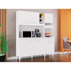 Kit para Cozinha Barbara Branco - Poquema Chegou a hora de inovar sua cozinha e você procura por armários de qualidade e com preços baixos? Aqui você encontra. Apresentamos o Kit para Cozinha da linha Barbara desenvolvida pela Poquema pensando em você que não tem muito espaço, mas não abre mão da organização e modernidade, conta com lindo design e um amplo espaço interno com repartições para melhor organizar seus utensílios, fabricado com materiais de ótima qualidade, proporcionando maior durabilidade ao móvel. Confira abaixo as características técnicas e garanta já o seu! Características Técnicas:- Desenvolvido 100% em MDP- Acabamento em pintura U.V na cor Branco- Possui 06 Portas sendo 01 com detalhe em vidro 3mm- Dobradiças metálicas- 01 Gaveta- Corrediças metálicas- Puxadores cromados- Divisões- kit pés plástico Branco- Acompanha tampo- Amplo espaço- Lindo design Dimensões:Altura: 1,83 cmLargura: 1,60 cmProfundidade: 40 cm Informações importantes:*Não realizamos a montagem ou instalação do produto, porém acompanha manual de instruções.