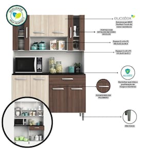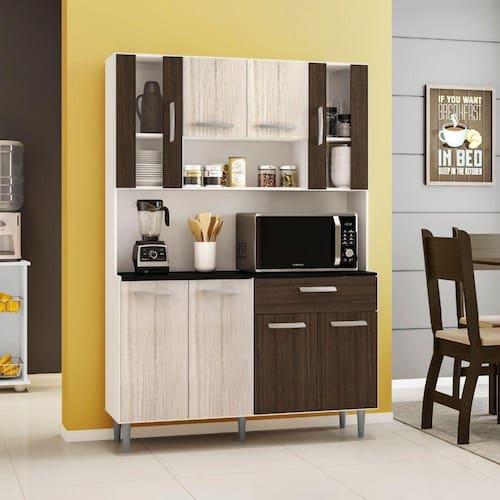 SOBRE O PRODUTO O Kit Cozinha 8 portas 1 gaveta Gabi da Poliman Móveis é ideal para quem deseja praticidade e funcionalidade em qualquer ambiente. Com design compacto e uma excelente disposição interna, traz em sua composição 08 portas de bater sendo 02 com detalhe em vidro, prateleira e nicho organizador decorativo dando um charme especial à peça, 01 gaveta com corrediças metálicas, espaço para aparelhos de utilidade doméstica, puxadores em polímero e pés fixos . Produto em MDP, disponível em padrões de cores que combinam com diversos ambientes. Qualidade que só a Poliman oferece em seus produtos.