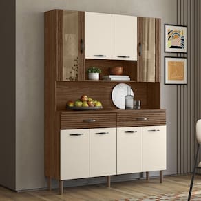 O Armário Kit Cozinha é perfeito para quem busca praticidade e estilo na organização do ambiente. Produzido em MDP de 12mm e 15mm, conta com 08 portas, sendo 02 portas superiores com vidro temperado, e 02 gavetas, equipadas com dobradiças e corrediças 100% metálicas. O design conta com puxadores ergonômicos e pés fixos, ambos em plástico resistente (poliestireno e polipropileno), além de nichos decorativos. Com pintura UV, o acabamento do móvel oferece maior proteção, realce nas cores e facilidade na limpeza do dia a dia. Este móvel chegará em sua casa separado em 01 volume.