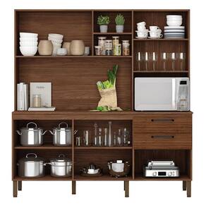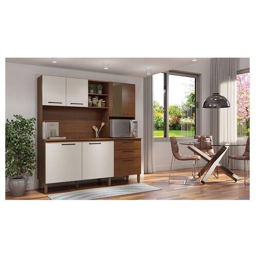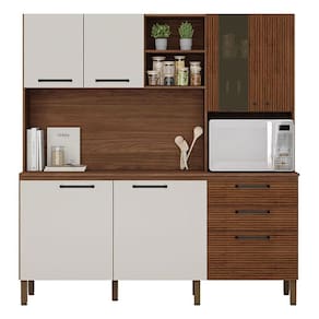 Kit Cozinha Ambiente Mega com Tampo Nogueira Off White Ripado - Kits Paraná