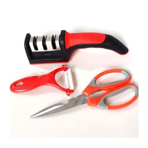 Kit Cozinha Amolador De Faca Tesoura Descascador - Tenha facas sempre afiadas!Tenha uma cozinha moderna e equipada com o Kit Cozinha Amolador De Faca Tesoura Descascador. Esse kit traz ferramentas essenciais para o seu dia a dia na cozinha. O amolador é simples e fácil de utilizar, não precisa de água nem de eletricidade. Com ele, você poderá manter as facas de sua casa perfeitamente afiadas, garantindo cortes precisos e segurança durante o preparo das refeições. A tesoura inclusa no kit possui um abridor de tampas e um quebra-nozes acoplado, tornando-a ainda mais versátil e prática para o uso diário.O Amolador possui 3 níveis de afiação: - A Afiação Grossa Nº1 é indicada para facas que estão com os fios completamente desgastados.- A Afiação Média Nº2 é ideal para facas que necessitam apenas da remoção de rebarbas e um médio acabamento aos fios.- A Afiação Fina Nº3 é indicada para facas que necessitam apenas da remoção de rebarbas e um fino acabamento aos fios.Instruções de uso do Amolador:1. Posicione o Amolador sobre uma base estável e segura.2. Com uma das mãos, segure o punho do amolador sobre a base e com a outra mão segure a faca a ser afiada.3. Com movimentos de cima para baixo, utilize uma suave pressão sobre os discos do amolador.4. Repita esse movimento até obter o resultado desejado.Garantia e devolução:Oferecemos uma garantia de 3 meses para o Kit Cozinha Amolador De Faca Tesoura Descascador. Além disso, você tem 7 dias para testar o produto, podendo devolvê-lo sem custo algum caso não esteja satisfeito.Não perca tempo e adquira agora mesmo Marca: innovaree-commerce