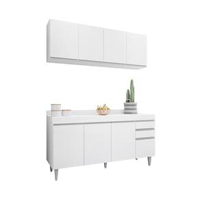 Kit Cozinha Armário e Balcão S/ Tampo 160cm Branco - Vallisa Decor