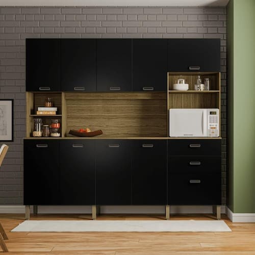 Kit Cozinha Armários E Portas Intense Freijó Nero