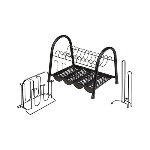 Fabricado em aço cromado na cor preta o Kit Cozinha Arthi é composto por três peças: escorredor de louças com capacidade para até 11 pratos, suporte para 5 copos e porta-rolos. Um mix moderno e completo que oferece fácil manuseio e uma decoração singular.