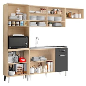Kit Cozinha Aurora 2012184 Avena Grafite - Aramóveis
