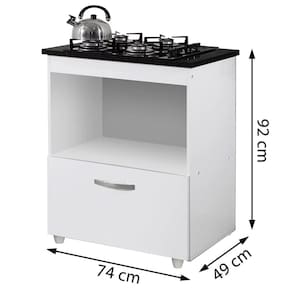 Altura: 92cm Largura: 74cm Profundidade: 49cm Material Principal: MDP Acabamento: Pintura UV Escala de Brilho: Fosco Possui Portas: 1 Tipo de Porta: Basculante Material do Puxador: MDF Possui Prateleiras: 1 Possui Gavetas: Não Tipo de Corrediça: Não possui Possui Pés: 4