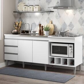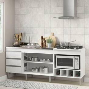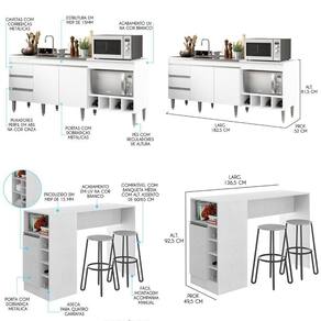 Kit Cozinha Balcão Cooktop Bancada Ilha Gourmet Menu Móveis Branco O Kit Cozinha Compacta sao moveis uteis e versateis perfeitos para completar o seu ambiente. Dispoe de um design atual que facilita na hora de montar a decoracao, proporcionando um espaco mais organizado e sofisticado. Produzido com materiais de excelente qualidade, garantindo a durabilidade e vida util do movel. O melhor em moveis no design atual aliando conforto, qualidade e otimos precos! Caracteristicas da Bancada: Produzido em MDP de 15 mm Acabamento em UV Porta com Dobradica Metalica Puxador em Perfil em ABS Adega para 4 Garrafas Nicho