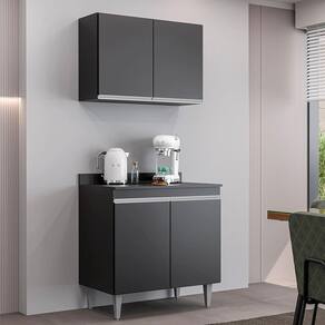 Kit Cozinha Balcão e Armário 80cm C/ Tampo Preto - Vallisa Decor