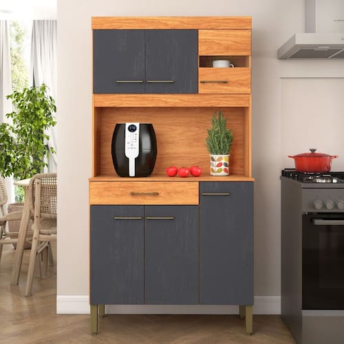 O Kit de Cozinha Carla é o móvel que faltava para completar seu lar e deixar os pertences da cozinha muito mais organizados! Além de encantador, o kit é produzido em MDP 1,2cm de ótima qualidade. O grande diferencial é seu Acabamento em Pintura UV de última geração que garante acabamento impecável ao produto, além de alta durabilidade. Possui 6 portas, sendo uma com vidro e dobradiças metálicas. Possui uma gaveta com corrediças telescópicas slim 3,5cm. Acompanha 4 pés com 17cm e regulagem de altura. Aproveite essa excelente oportunidade e adquira agora mesmo esse maravilhoso produto e deixe sua cozinha linda e organizada! Acabamento da Gaveta: Pintura UV Escala de Brilho da Gaveta: Semi-Brilho Material do Puxador da Gaveta: Plástico Acabamento da Porta: Pintura UV Escala de Brilho da Porta: Semi-Brilho Material do Puxador da Porta: Plástico Acompanha Tampo: Sim Ambiente Principal: Cozinha Balcão Suporta Pia: Não codigo_ean: 7900288067630 Complexidade da Montagem: Baixa: pode ser montado por uma pessoa sozinha Cor: Cinamomo/Grafite Cor do Produto: Cinamomo/Grafite Cor Interna: Cinamomo Escala de Brilho: Semi-Brilho Espessura do Material da Estrutura: 12 mm Espessura do Tampo: 12 mm Gaveta com Chave: Não Itens Inclusos: Móvel, Manual de Montagem, Acessórios Linha ou Coleção: Kits Cozinha Manual de Montagem e Instalação: https://product-hub-prd.madeiramadeira.com.br/977735/documents/3a6bbd9a-dbc1-4386-88e2-a47a3755f51d2680414406517393622177057.pdf Marca: Fellicci Material da Dobradiça/Corrediça da Porta: Metálica Material da Gaveta: MDP Material da Porta: MDP Material do Fundo: MDP Material do Tampo: MDP Material dos Pés: Plástico modular: Não Necessita Montagem: Sim O Balcão Acompanha Pia: Não Origem do Produto: Nacional Pés Reguláveis: Sim Peso: 30,87 kg Peso Máximo por Gaveta: 2 kg Possui Pés: 04 Possui Porta com Vidro: Sim Possui Portas: Sim Possui Prateleiras: Não Possui recorte para Cooktop: Não Possui Rodízio: Não Possui Vidro: Sim Produto Montado: Sim Recomendações de Uso, Manutenção e Limpeza: Pano levemente úmido Sapatas Niveladoras: Não Sistema de Montagem: Parafusos Tamanho Indicado da Pia: não se aplica Tipo de Corrediça da Gaveta: Metálica Telescópica Tipo de Dobradiça da Porta: Simples Tipo de Puxador da Gaveta: Externo Tipo de Puxador da Porta: Externo