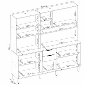 • Informações Adicionais: Pés com regulagem de altura; Não Acompanha Objetos Decorativos