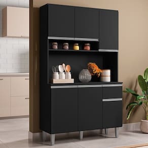 É composta por 6 Portas com abertura convencional, 1 gaveta, 1 prateleira ,2 nichos e tampo em MDP. Ótimo espaço interno acomodando os utensílios e deixando a sua