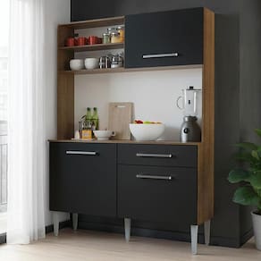 Perfeita em apartamentos e casas que precisam de total otimização do espaço, a cozinha é composta por materiais de ótima qualidade, como puxadores com alumínio, corrediças e dobradiças metálicas e pés em PVC.