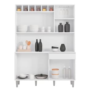 O acabamento em branco confere um toque clean e versátil ao ambiente, possibilitando fácil combinação com diferentes estilos de decoração. Além disso, a estrutura resistente e durável garante a longa vida útil do móvel, tornando-o uma escolha inteligente para sua cozinha.