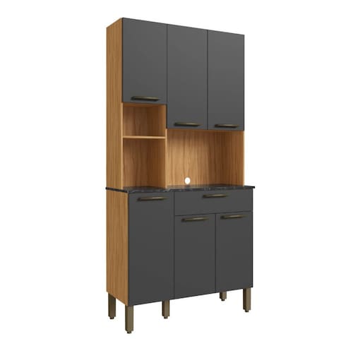 O Kit pinot 04Pts, é um produto 100% MDF, seu acabamento é em pintura U.V. e fita de bordo FF. Possui tampo de 15mm. Possui gaveta com corrediça telescopica e pratelira, espaço para microondas, nicho decorativo e adega, possui puxador e pés em ABS.