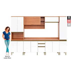 Cozinha Completa Thela Macadâmia 6 Peças (2Aéreos+2Balcões+1Paneleiro) CZC26 Freijo/Branco - Telasul