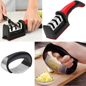 Descrição do anúncio: O kit espremedor de alho é um utensílio resistente e funcional + amolador de facas desenvolvido para agilizar o preparo de receitas. Além de triturar alho, pode ser para pimentas, castanhas e gengibre. O amolador é ideal para facas e tesouras essencial para se ter na cozinha. Conteúdo da embalagem: 1 espremedor de alho 1 amolador de facas Características: Material: aço inox Design elegante e ergonômico Fácil de limpar Evita contato direto com o alho Especificações: Material: aço inoxidável e abs Tamanho: 10,5 cm x 7,2 cm Peso: 106g Capacidade de trituração: 1 dente de alho a cada 2 segundos Principais perguntas sobre o produto e respostas: 1 este espremedor pode ser para outros alimentos além do alho Sim, ele pode ser para triturar pimentas, alguns tipos de castanhas e gengibre. 2 é fácil de limpar Sim, o design permite uma limpeza fácil e rápida. 3 de que material é feito o espremedor Ele é feito de aço inoxidável e abs. 4 qual é a capacidade de trituração do espremedor Ele pode triturar 1 dente de alho a cada 2 segundos. 5 o espremedor evita o cheiro de alho nas mãos Sim, ao usar o espremedor, você evita o contato direto com o alho, eliminando o cheiro nas mãos. 6 este afiador pode ser para afiar lâminas serrilhadas Não, ele não é adequado para lâminas serrilhadas. 7 preciso de água ou óleo para usar o afiadorNão, o afiador não necessita de água nem óleo. 8 é fácil de usar Sim, é muito simples e eficiente de usar, com instruções claras para cada etapa de afiação. 9 ele é seguro para usar Sim, mas deve ser manuseado com cuidado e mantido fora do alcance de crianças. 10 o afiador é compacto R: sim, ele é compacto e fácil de armazenar, ideal para cozinhas com espaço limitado. Marca: Não Informado Ean: 7904405000357