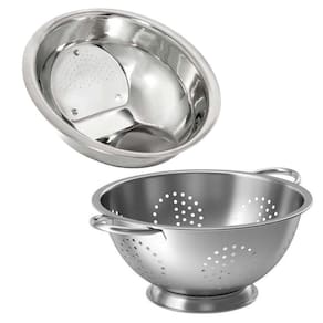 Kit Cozinha Escorredor De Arroz E Macarrão Inox 2 Peças