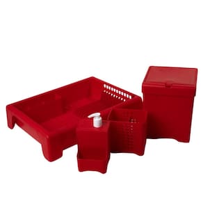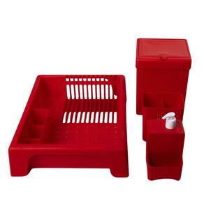 Dimensões e Capacidades IndividuaisEscorredor de Louça: 45 cm C x 34 cm L x 10 cm A - Capacidade para 12 pratosPorta Talheres: 12,5 cm C x 13 cm L x 9 cm A Lixeira: 18 cm C x 18 cm L x 22 cm A - Capacidade de 5,4 litrosDispenser para Detergente e Esponja: 10 cm C x 10 cm L x 19 cm A DiferenciaisDesign moderno e funcionalMaterial resistente e fácil de limparLixeira com tampa basculante para maior higieneIdeal para otimizar espaço na piaFácil de montar e usarConteúdo da Embalagem1 Escorredor de Louça1 Porta Talheres1 Lixeira com tampa - 5,4L1 Dispenser para Detergente e Esponja