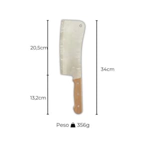Tamanho total: 31cm, com a lâmina de 7" (18,5 cm) e cabo de 11,5 cm.