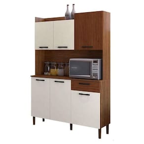 Kit Cozinha Gênova 6 Portas Nogueira Off White Ripado - Kits Paraná