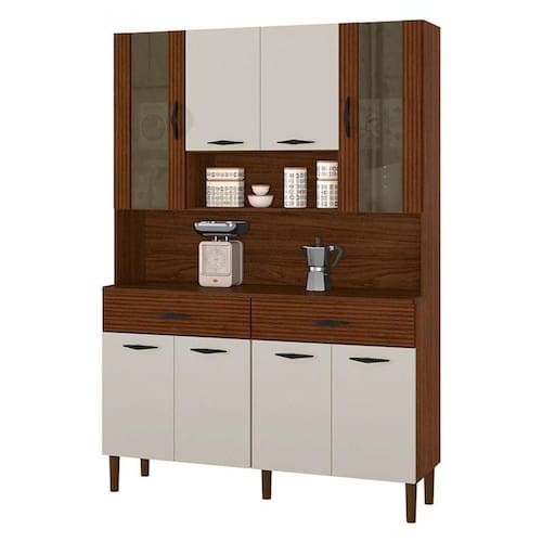 Kit Cozinha Golden 8 Portas Nogueira Off White Ripado - Kits Paraná