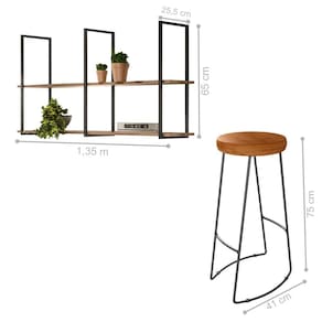 O Kit Prateleira Decorativas e 4 Banquetas serve para organizar e separar objetos e decorar o ambiente. Tudo isso em um único conjunto.