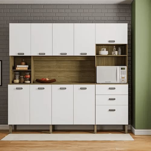A cozinha Intense seja uma das maiores do mercado de Kits e cozinhas práticas. Além disso, a cozinha prática Intense conta com 3 nichos decorativos que permitem personalizar a decoração da cozinha e guardar itens do dia a dia, deixando o ambiente ainda mais bonito e funcional. E não podemos esquecer do nicho para forno elétrico ou micro-ondas, com um espaço amplo para garantir a praticidade na hora de cozinhar e utilizar no dia a dia. Mas não é só isso. As duas amplas gavetas com corrediças telescópicas são um verdadeiro show à parte, proporcionando um deslize suave e sem esforço, sem contar que são super espaçosas e garantem a organização dos utensílios da cozinha.