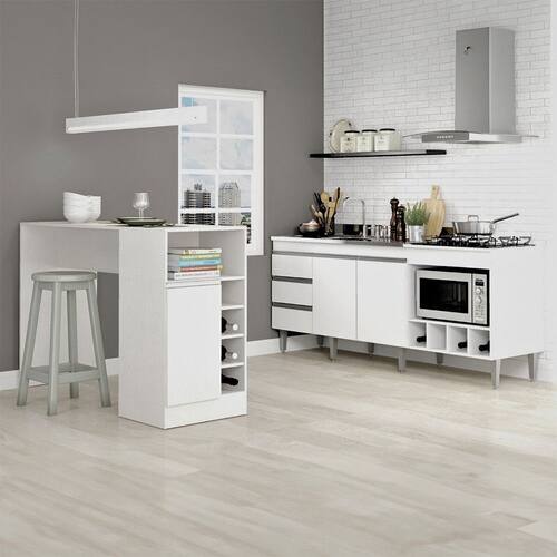 Caracteristicas da Bancada: Produzido em MDP de 15 mm Acabamento em UV Porta com Dobradica Metalica Puxador em Perfil em ABS Adega para 4 Garrafas Nicho