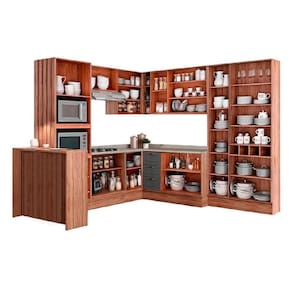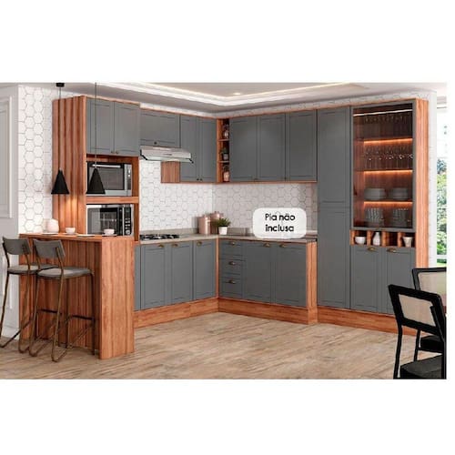 Cozinha Completa Bella 11 Peças (3Aéreos+3Balcões+1Paneleiro+1Cristaleira+1TorreQuente+1Ilha+1Complemento) C11P50 Nogal/Cinza - Carraro