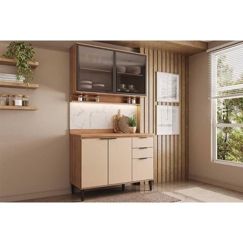 Kit Cozinha Modulada 2 Peças Alpha (1Aéreo+1Balcão) C2P52 Freijo/Off White-Carraro - Blush