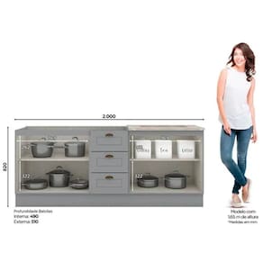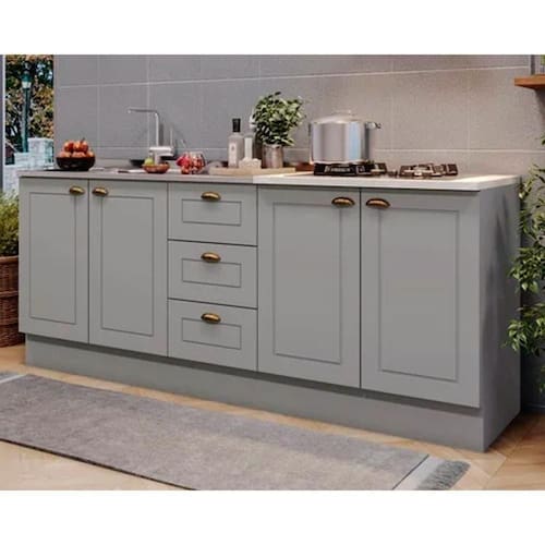 Balcão de Cozinha Americana p/ Pia c/ 2 Portas e 3 Gavetas s/Tampo 120cm Cinza - Henn