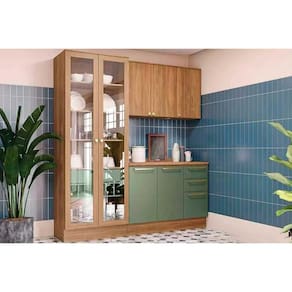 Cozinha Completa Botanic 4 Peças (1Aéreo+1Balcão+1Cristaleira+1Complemento) M656 Nogueira/Verde Oliva - Kappesberg