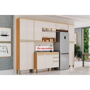 Cozinha Completa Nápoli Prime 5 Peças (2Aéreos+1Balcão+2Paneleiros) C5P96 Amendoa/Off White - Ronipa