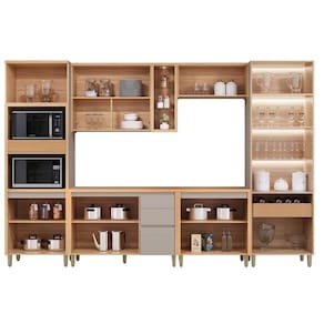 Kit Cozinha Modulada 6 Peças Allure (2Aéreos+2Balcões+1Cristaleira+1TorreQuente) CP03 Jequitiba/Gris Fosco - Linea Brasil - Blush