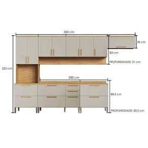 Cozinha Completa Riesling 6 Peças (3Aéreos+2Balcões+1Paneleiro) C6P110 Amendoa/Off White - Ronipa