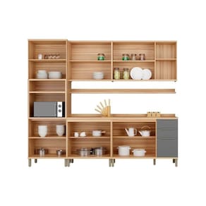 Kit Cozinha Modulada 7 Peças Sauvignon (2Aéreos+2Balcões+1TorreQuente+2Complementos) C7P93 Amendoa/Grafite - Ronipa