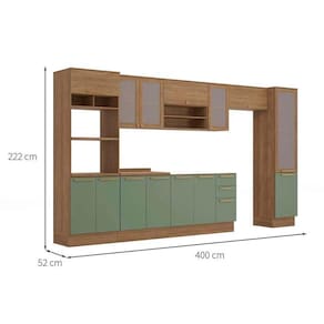 Cozinha Completa Botanic 8 Peças (3Aéreos+2Balcões+2Paneleiros+1Complemento) s/Pia M651 Nogueira/Verde Oliva - Kappesberg