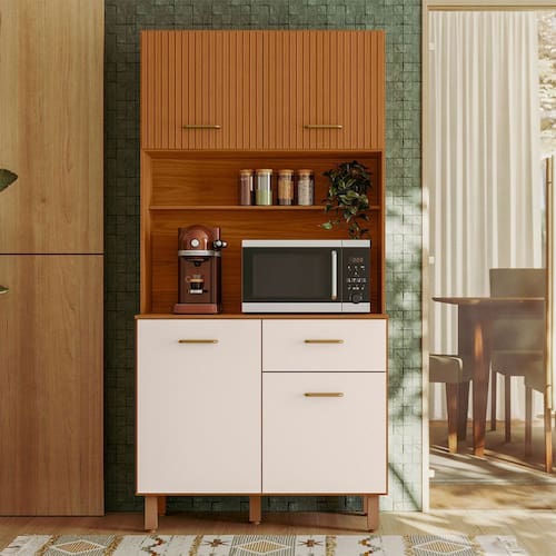 Os puxadores de pol?mero ouro fosco trazem um toque de sofistica??o ao design, e os p?s de PVC regul?veis de 18cm oferecem a possibilidade de um nivelamento perfeito ao piso. O produto ? fabricado em MDP, com acabamento em pintura UV, o que confere maior resist?ncia e beleza ao m?vel.