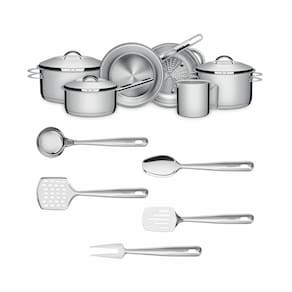 Kit Cozinha Solar Aço Inox Fundo Triplo 11 Peças Com Utensílios - Tramontina