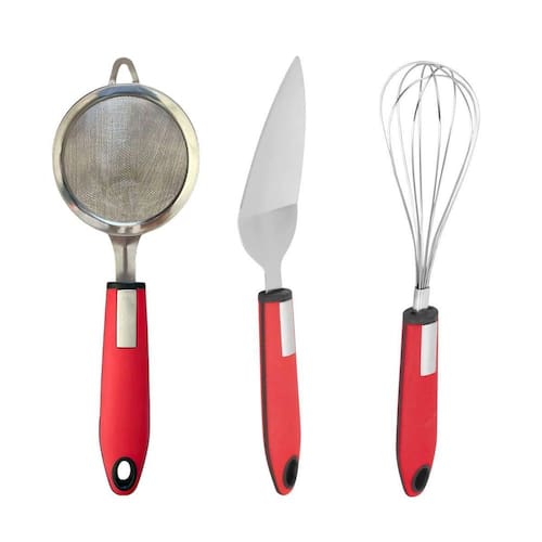 Kit Cozinha - Peneira Inox Espátula e Batedor Vermelho Kit de Utensílios para Cozinha - Peneira Inox, Espátula para Bolo e Batedor Fouet Aplicação: Um conjunto indispensável para quem gosta de cozinhar com praticidade e eficiência. Ideal para preparo de massas, confeitaria e tarefas do dia a dia na cozinha. Itens Inclusos: 1 peneira de aço inox com malha fina, ideal para coar líquidos ou peneirar ingredientes secos; 1 espátula para bolo com lâmina de aço inox, excelente para cortar e servir bolos ou tortas com precisão; 1 batedor fouet com fios de aço inox, perfeito para bater ovos, massas leves e molhos. Dicas de Uso: A peneira evita grumos em suas receitas e pode ser Utilizado para sucos e caldos. A espátula garante cortes limpos e seguros em sobremesas e massas. Já o fouet proporciona uma mistura uniforme com rapidez. Cuidados e Manutenção: Lave os utensílios com água morna e detergente neutro após o uso. Evite usar esponjas abrasivas para preservar o acabamento. Todos os itens possuem cabo ergonômico e furo para pendurar, facilitando o armazenamento. Marca: Não Informado Ean: 7909463715083