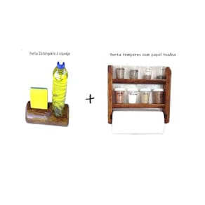 Kit com porta detergente com espaço para acomodar a esponja + porta temperos com suporte para papel toalha. Com design diferenciado e com uma proposta diferente estes itens é para ambientes fora do convencional e para pessoas com personalidade. Lavar louças e organizar a cozinha é uma tarefa sempre presente no nosso dia a dia e estes itens vem para auxiliar tanto na decoração como na praticidade e organização.