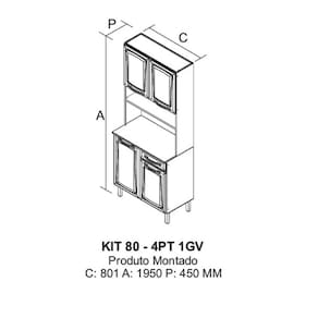 O kit Cozinha Pratika é a combinação que faltava na sua cozinha. Com um belíssimo acabamento, a peça tem tudo para se harmonizar com as outras mobílias do espaço. Além disso, ele é extremamente funcional, com 4 portas e 1 gavetas, perfeitas para guardar os utensílios domésticos, como vasilhas, compras e talheres. O kit Cozinha Pratika é feito em aço, material que garante mais durabilidade e resistência ao produto. Acabamento da Gaveta: Pintura Acabamento da Porta: Pintura Acabamento da Prateleira: Pintura Acabamento dos Pés: Polipropileno Altura dos Pés: 16 cm Ambiente Principal: Cozinha Complexidade da Montagem: Alta: deve ser montado por um montador especializado Cor: Branco/Preto Cor do Produto: Branco/Preto Cor Interna: Branco Escala de Brilho: Semi-Brilho Escala de Brilho da Gaveta: Semi-Brilho Escala de Brilho da Porta: Semi-Brilho Escala de Brilho da Prateleira: Semi-Brilho Gaveta com Chave: Não Itens Inclusos: 1 Armário, kit ferragens e manual de montagem. Linha ou Coleção: Pratika Manual de Especificação Técnica: https://cdn2.madeiramadeira.com.br/atributo/itatiaia-aco/1128819-1000013768-manual-mont-kit-80-4pt-1gav-pratika-2.pdf Manual de Montagem e Instalação: https://cdn2.madeiramadeira.com.br/atributo/itatiaia-aco/1128818-1000013768-manual-mont-kit-80-4pt-1gav-pratika-2.pdf Material da Gaveta: Aço Material da Porta: Aço Material da Prateleira: Aço Material dos Pés: Polipropileno Material Principal: Aço Necessita Montagem: Sim Origem do Produto: Nacional Pés Reguláveis: Sim Peso: 28 kg Peso Máximo por Gaveta: 3 kg Peso Máximo por Prateleira: 12 kg Possui Espelho: Não Possui Possui Pés: 04 Possui Portas: 04 Possui Prateleiras: 03 Possui Rodízio: Não Recomendações de Uso, Manutenção e Limpeza: Pano Limpo e Umedecido. Sapatas Niveladoras: Sim Sistema de Montagem: Parafusos Suporta Até (kg): 110 kg Tipo de Corrediça da Gaveta: Telescópica Tipo de Dobradiça/Corrediça da Porta: Simples Tipo de Porta: Bater Tipo de Puxador da Gaveta: Externo Tipo de Puxador da Porta: Externo