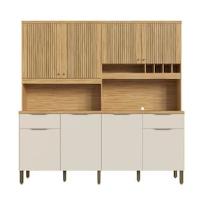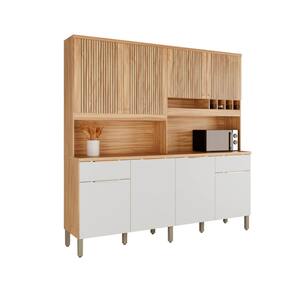 Possui gaveta com corrediça telescopica, prateliras, espoço para microondas, adega, puxador em ABS e pés em ABS com regulagem.