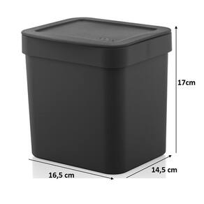 - Dimensões da Lixeira: 16,5cm (C) x 14,5cm (L) x 17cm (A)