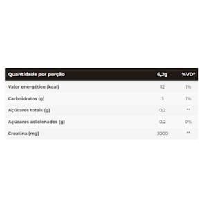 Sua sugestão seria de 1 dosador (7,1g) misturado com 200ml de água ou sua bebida de preferência, assim irá obter todos os benefícios da creatina.